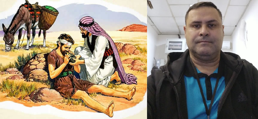 Sandro de Castro e gravura do Bom Samaritano bíblico