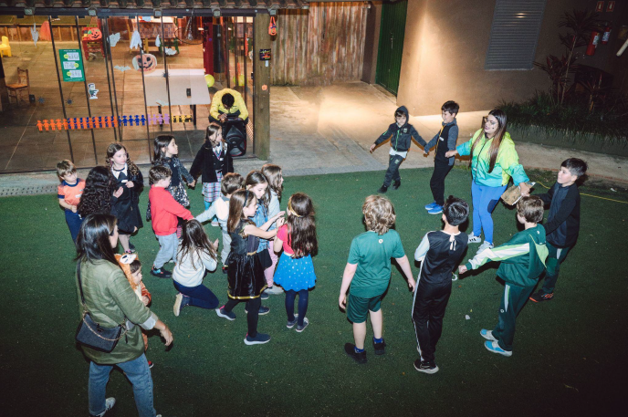 Quem conduz a diversão – gratuita – é a Go Kids, que traz uma proposta saudável e dinâmica: além das brincadeiras antigas como “caça ao tesouro noturno com lanternas”, “pega-pega infinito”, “pique bandeira” e “o chão é lava”, também realiza partidas de futebol e oficinas de slime, pintura e colagem. Toda a diversão acontece tanto ao ar livre, no gramadão do restaurante, quanto em espaços cobertos nos dias de frio e chuva.