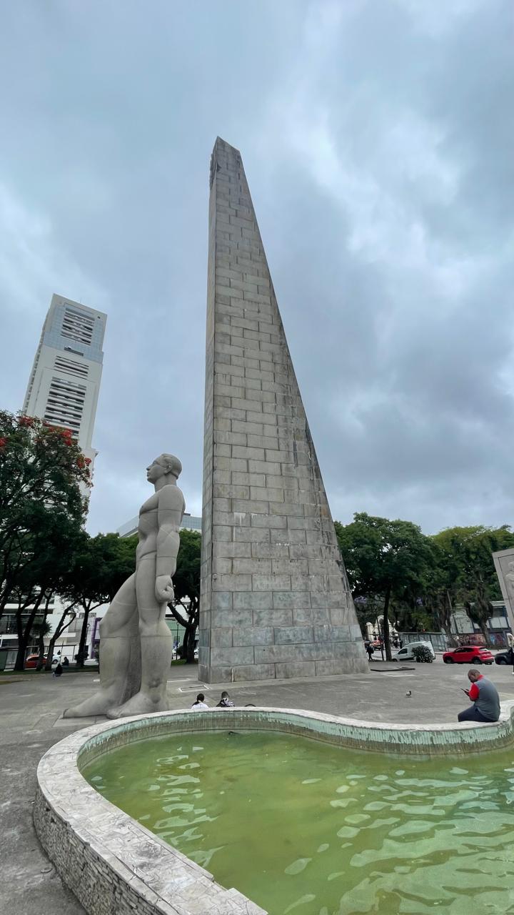 Inaugurado em 1953, em comemoração ao centenário da emancipação política do Paraná, o obelisco foi construído no governo de Bento Munhoz da Rocha, como parte de um grande projeto de obras públicas que transformou o Centro Cívico em uma esplanada reunindo os edifícios dos poderes Legislativo, Executivo e Judiciário.