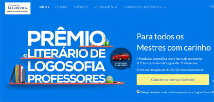 Encerram-se no último dia deste mês (31 de julho) as inscrições e remessa de trabalhos concorrentes ao Prêmio, voltado para docentes de todos os níveis e de todo Brasil. O objetivo principal do concurso é estimular os educadores à análise “dos conceitos logosóficos sobre o ser humano, sobre a vida e uma nova forma de ensinar e aprender, trazendo elementos transformadores e revolucionários para uma nova docência”.