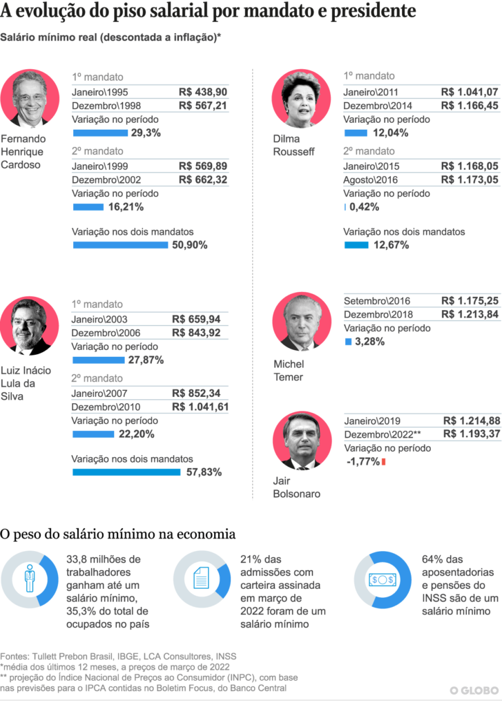 O salário mínimo está na Constituição brasileira, que o protege de perdas do poder de compra, sendo obrigatória a recomposição da inflação.