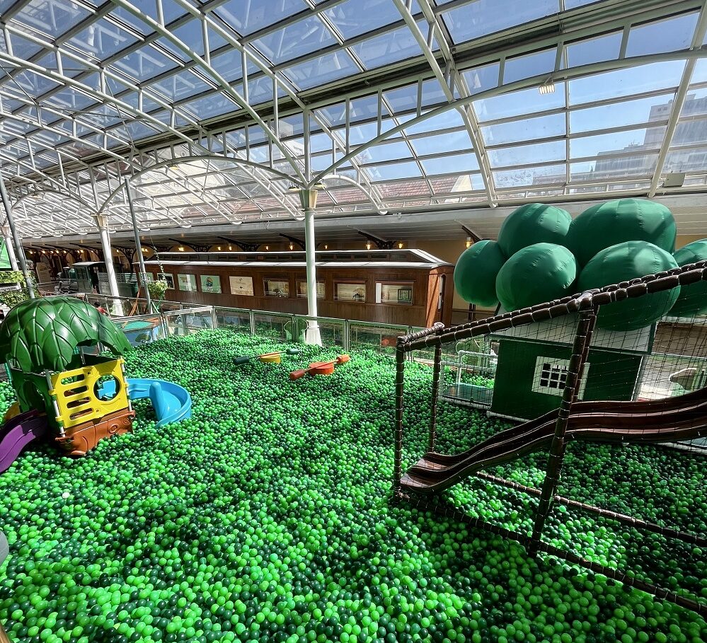 O parque que conta com casa na árvore, piscina de bolinhas gigante e muitas outras atrações está montado dentro do Shopping Estação