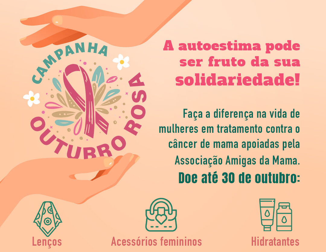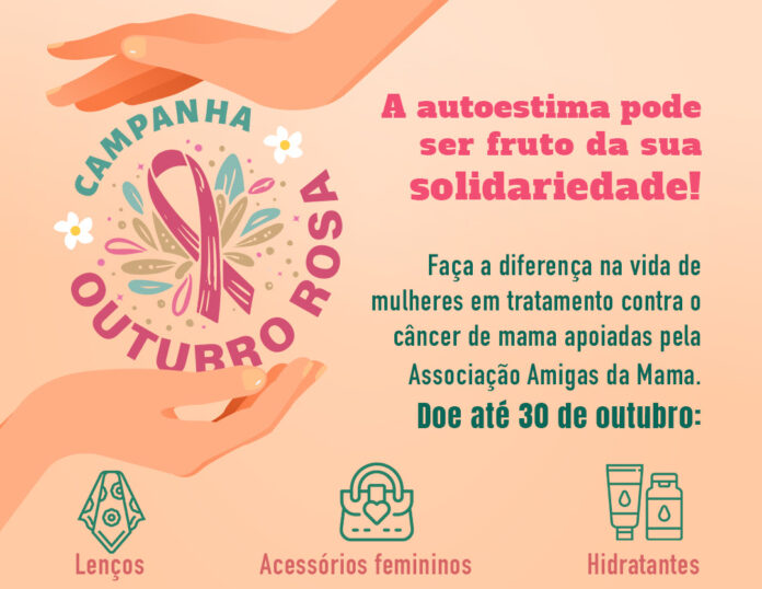 Assessoria – Até o dia 30 de outubro, a Associação Evangelizar É Preciso realiza mais uma campanha Outubro Rosa, com o objetivo de arrecadar lenços, acessórios femininos e hidratantes. Os donativos serão entregues a mulheres em tratamento contra o câncer de mama atendidas pela Associação Amigas da Mama.