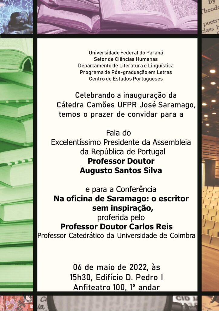 No ano em que se assinala o Centenário do Nascimento de José Saramago, o Camões, I.P. – Instituto da Cooperação e da Língua e a UFPR (Universidade Federal do Paraná) inauguram, no próximo dia 6 de maio, a Cátedra Saramago nesta universidade. A sessão contará, para além do Magnífico Reitor, Professor Ricardo Marcelo Fonseca, e outras autoridades académicas da UFPR, com a presença do Presidente da Assembleia da República de Portugal, Augusto Santos Silva, do Embaixador de Portugal, Luís Faro Ramos, e do Comissário para as comemorações do Centenário, o Professor Carlos Reis.