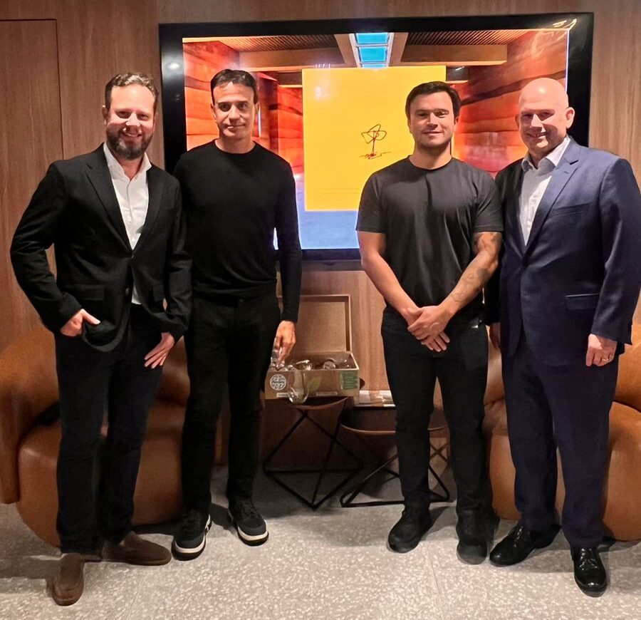 Henry Fukner, da Zireh Imóveis, os arquitetos José Mendes Júnior e Cristian Santus, da Montipê Arquitetura, e Marcelo Ciscato, da Rocas Incorporadora, durante apresentação do Arví – Condomínio Design, projeto que reforça Morretes como destino de segunda moradia de alto padrão, a apenas 66 quilômetros de Curitiba, unindo natureza preservada, privacidade e qualidade de vida.
