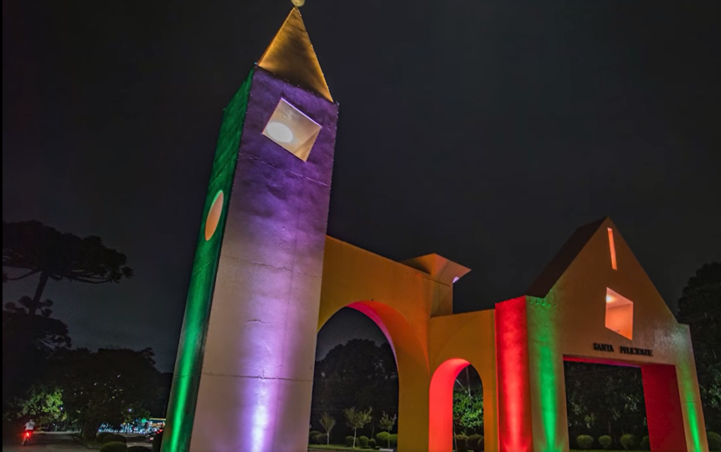 Frame do vídeo postado pelo alcaide em suas redes, sobra iluminação do Monumento de Santa Felicidade