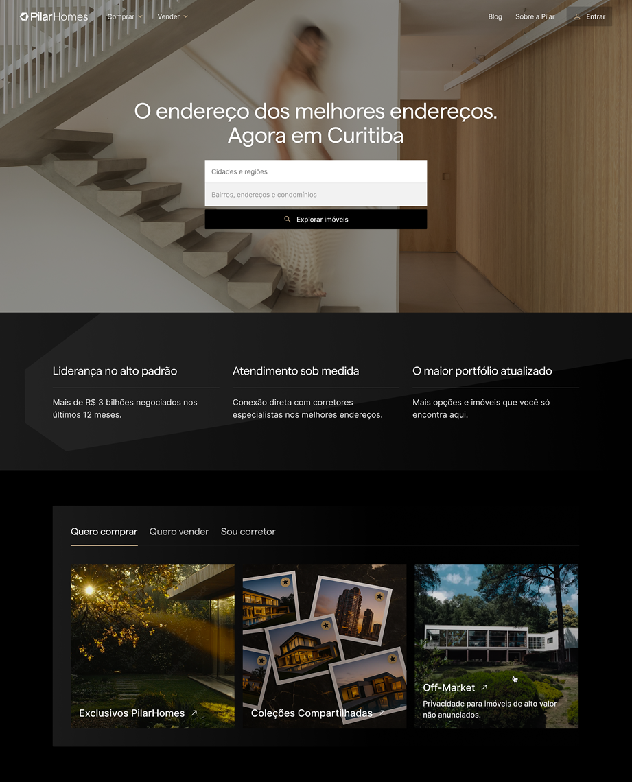 “O PilarHomes é o endereço dos melhores endereços. Ele nasce para reunir, em um só lugar, o que há de mais relevante no alto padrão de Curitiba — com informações precisas, curadoria e a credibilidade dos nossos parceiros. É uma plataforma feita para valorizar o corretor e simplificar a jornada do cliente, conectando as duas pontas com transparência e eficiência”, explica Felipe Abramovay, CEO da Pilar.