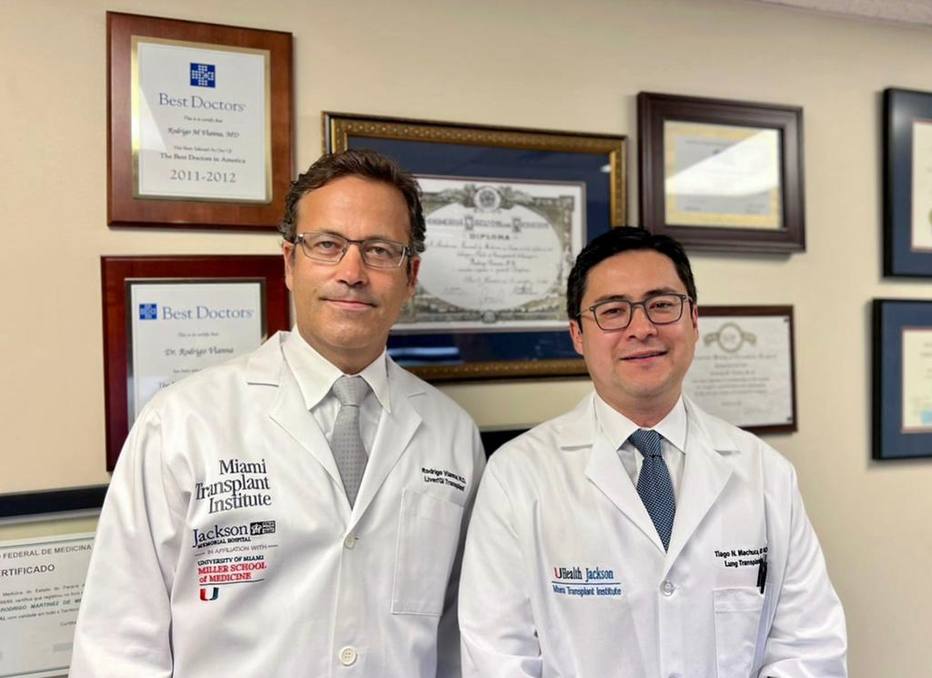 Rodrigo Vianna e Tiago Machuca, médicos curitibanos. Foto: Miami Transplant Institute.