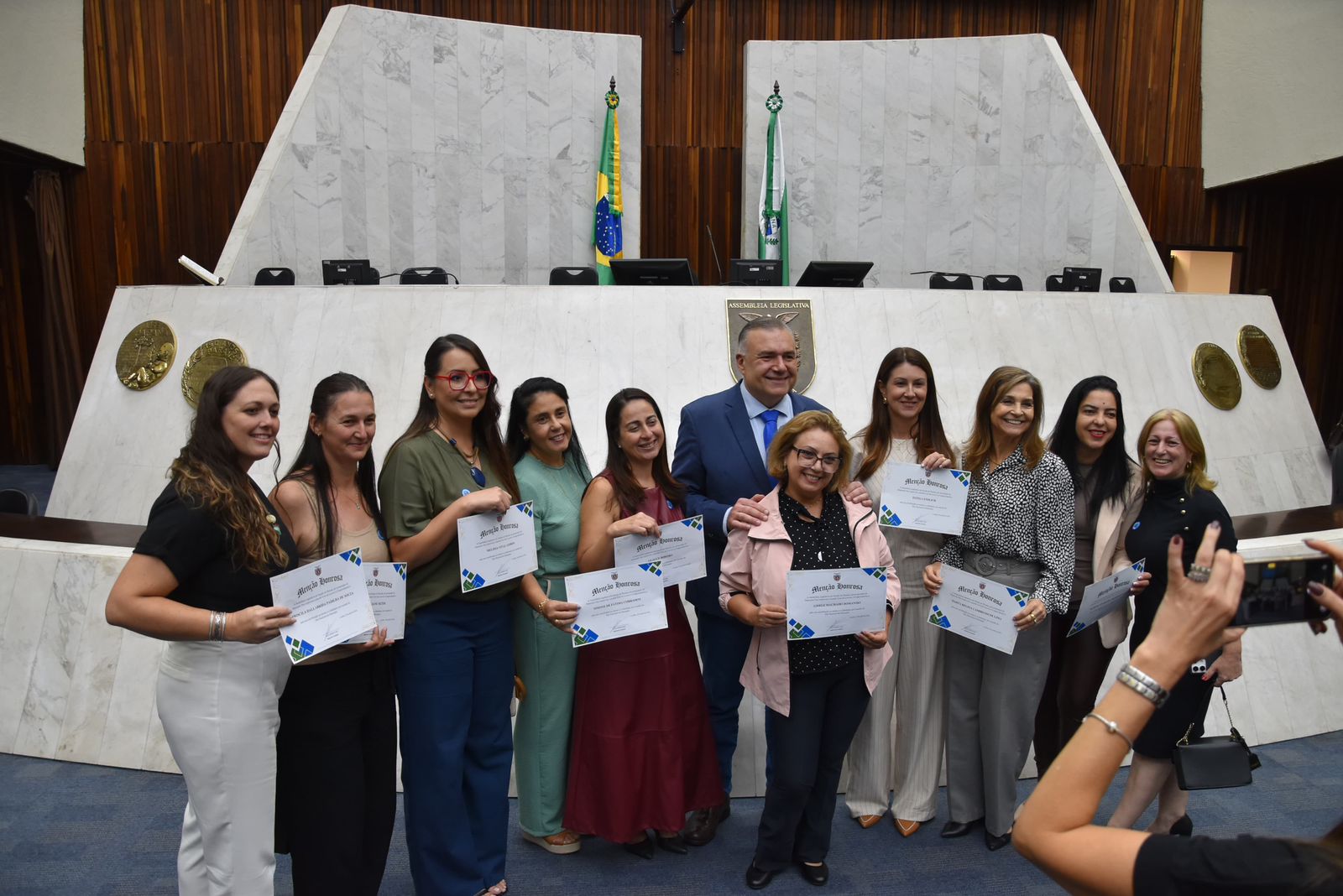 A cerimônia reuniu autoridades, educadores, estudantes e representantes da sociedade civil, lotando o plenário e as galerias da Casa de Leis. Um dos destaques do evento foi a apresentação da Banda Musical do Caximba, formada por jovens e crianças, que emocionou o público presente.