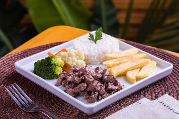 - Mini Chef – Cubos de mignon grelhado, acompanhados de arroz branco soltinho, batatas fritas e uma seleção de legumes preparados especialmente para agradar as crianças.