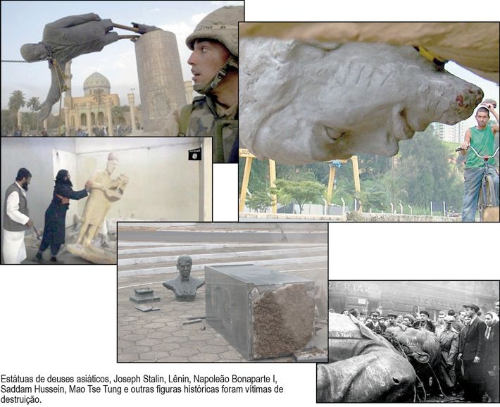 Na revanche de derrotados contra vencedores, não sobrou pedra sobre pedra nem mesmo da estátua de Napoleão Bonaparte I, que deitou morta em praça pública, apesar do histórico de conquistas e glórias do imperador francês. Igual destino teve a grande figura de concreto do ditador Saddam Hussein derrubado por militares norte-americanos tão logo selaram o destino de Bagdá, sob o pretexto de que o governo iraquiano detinha um programa secreto de armas químicas. A estátua caiu mesmo assim, em 2003.