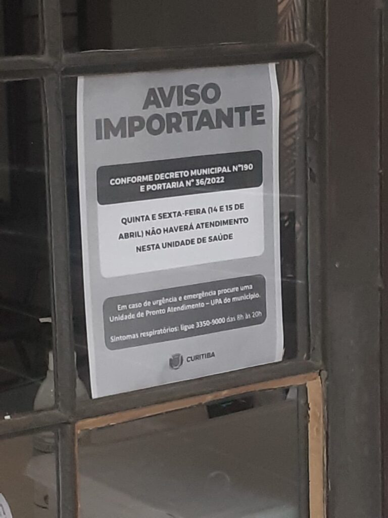 Amigos da Coluna informam que, nesta quinta-feira (14), a UBS da Praça Ouvidor Pardinho estava repleta de idosos em busca de medicamentos, por volta das 13h, mas que deram com a cara na porta. O motivo? Quinta-Feira Santa é ponto facultativo para os funcionários da prefeitura de Rafael Valdomiro Greca de Macedo. Houve até uma tentativa de organização de uma marcha em protesto, mas que não foi adiante devido à idade avançada dos manifestantes.