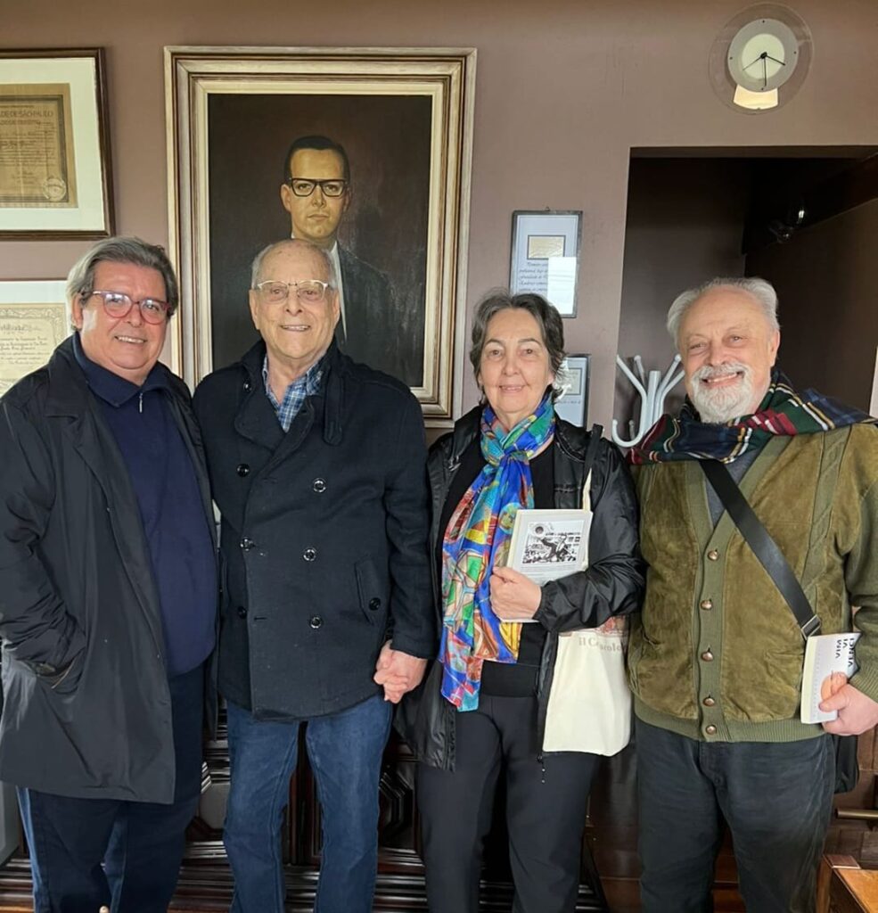 Agora com 94 anos, o ex-governador Paulo Pimentel recebeu os cumprimentos pelo aniversário em visita de grupo de jornalistas: