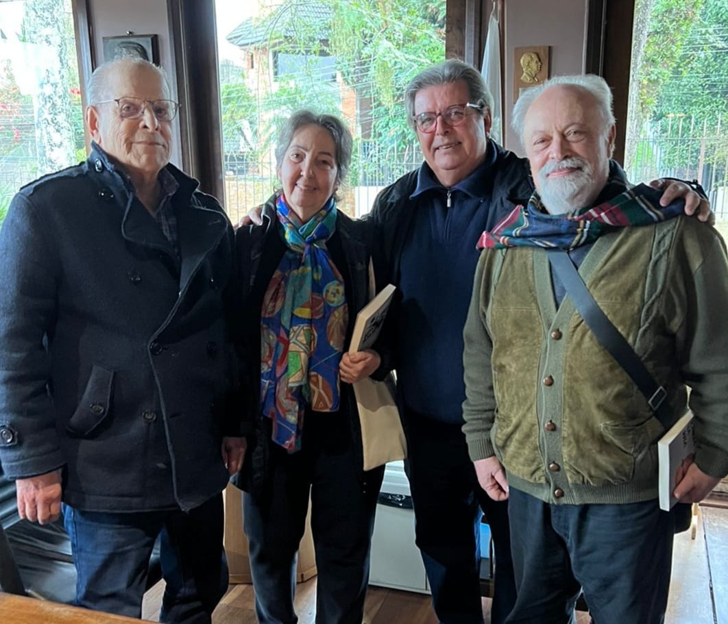 Agora com 94 anos, o ex-governador Paulo Pimentel recebeu os cumprimentos pelo aniversário em visita de grupo de jornalistas: