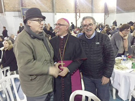 No jantar de adesão, logo depois da posse de Dom Ricardo Hoepers como bispo da cidade do Rio Grande, RS, dia 3, sexta, ele é cumprimentado pelo jornalista Aroldo e pelo presidente do Instituto dos Advogados do Paraná, Lucio Glomb.