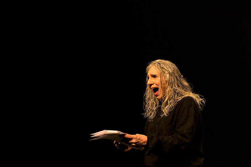 Denise Stoklos em cena. Foto: Lina Sumizono