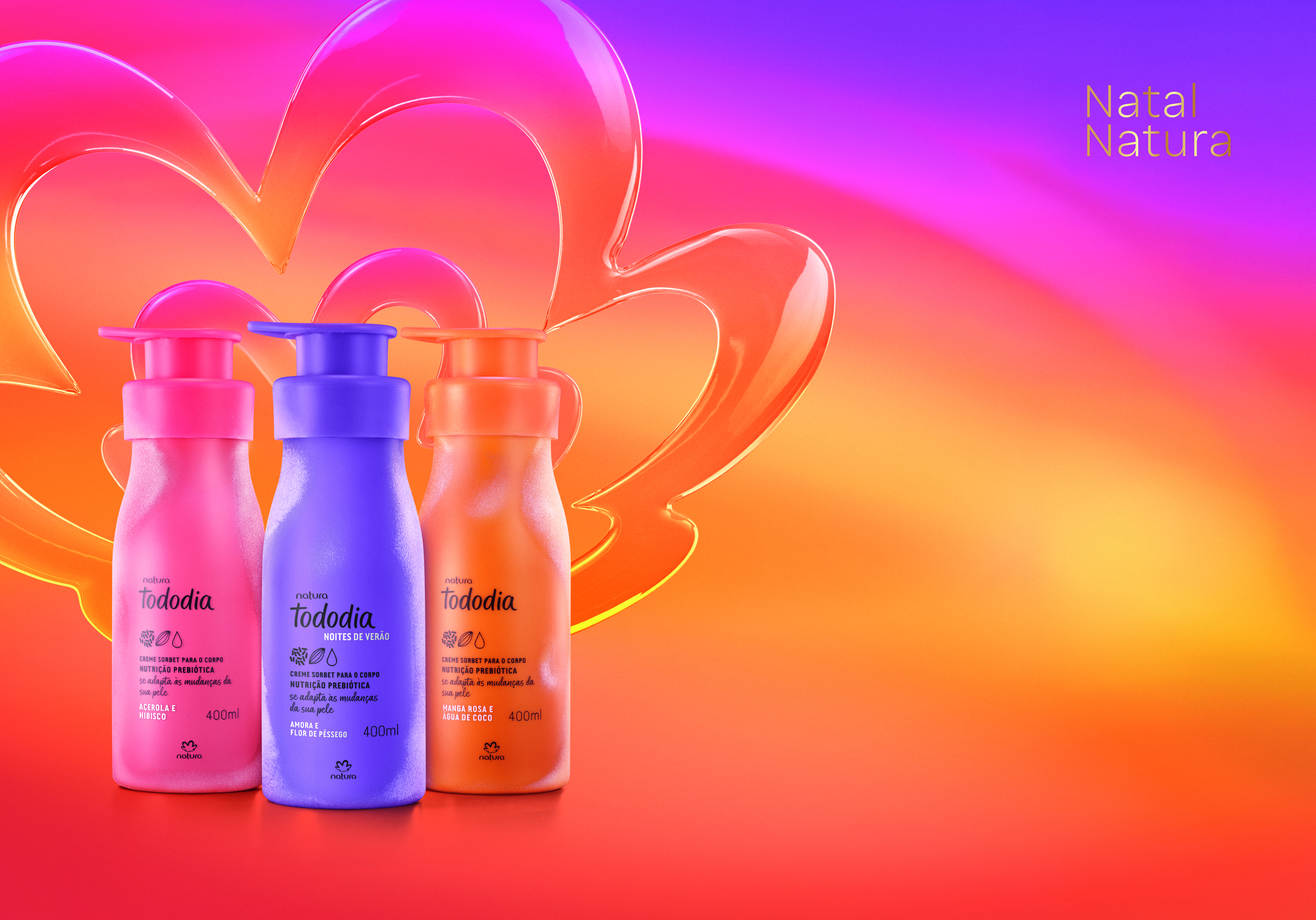 As três fragrâncias tropicais são inspiradas em cada momento do verão. Natura Tododia Manga Rosa & Água de Coco traz a energia vibrante do meio-dia, com notas frescas e frutadas que despertam os sentidos, enquanto Natura Tododia Acerola & Hibisco evoca a exuberância do pôr do sol, envolta por um perfume cítrico e radiante. Já o novo Natura Tododia Amora e Flor de Pêssego desperta todo romantismo e autenticidade das noites quentes do verão, com uma fragrância floral adocicada e envolvente.