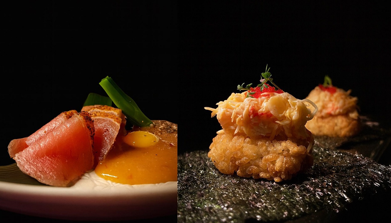 Já o Maguro Nuta revela a precisão no trabalho com pescado cru, a partir de fatias de sashimi de atum da parte do akami, porção magra do lombo, servidas com salada de brotos e especiarias japonesas, finalizadas com molho de kara miso enriquecido com toban djan, responsável por imprimir profundidade, umami e leve picância.