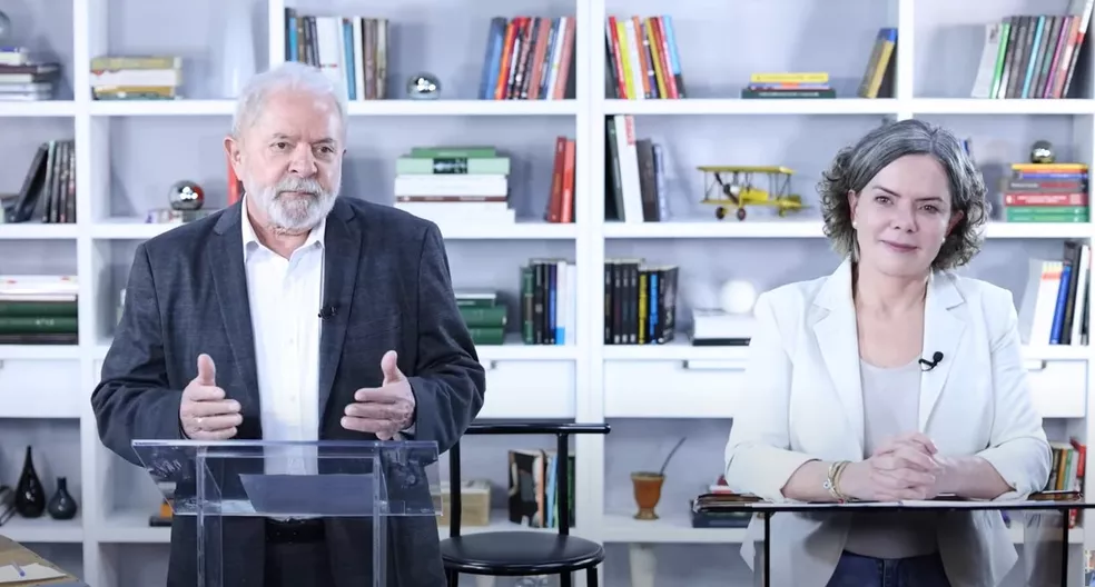 Lula e Gleisi Hoffmann durante participação por videoconferência em seminário do partido. Foto: Reprodução / YouTube