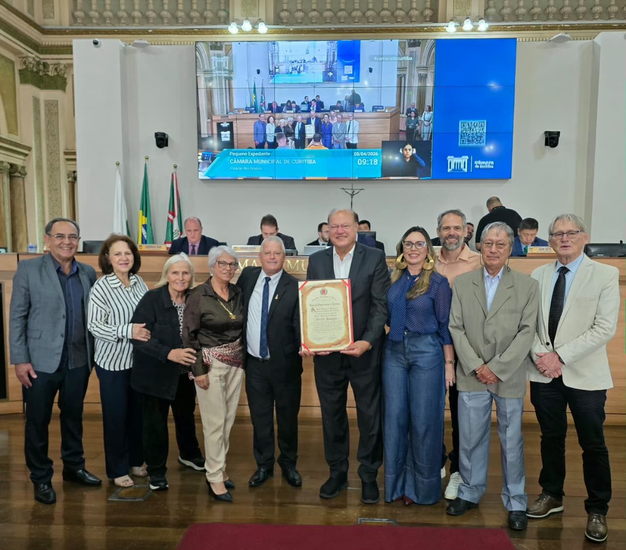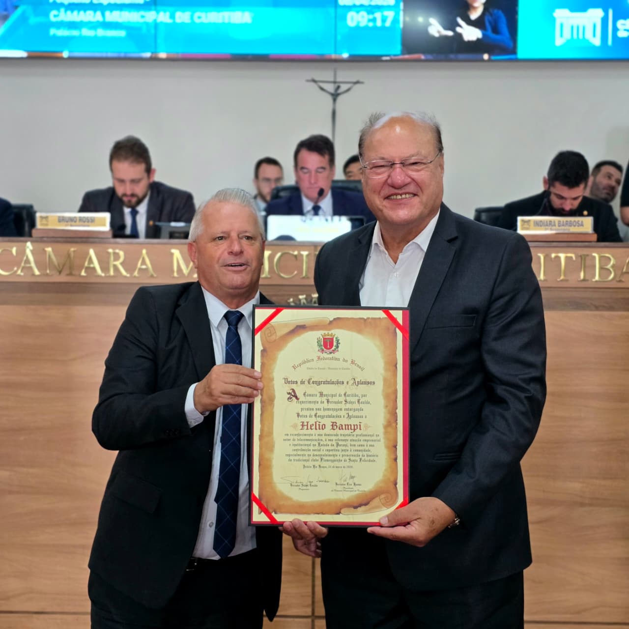 “Hoje entregamos VOTOS DE CONGRATULAÇÕES E APLAUSOS a HELIO BAMPI na Câmara Municipal de Curitiba.