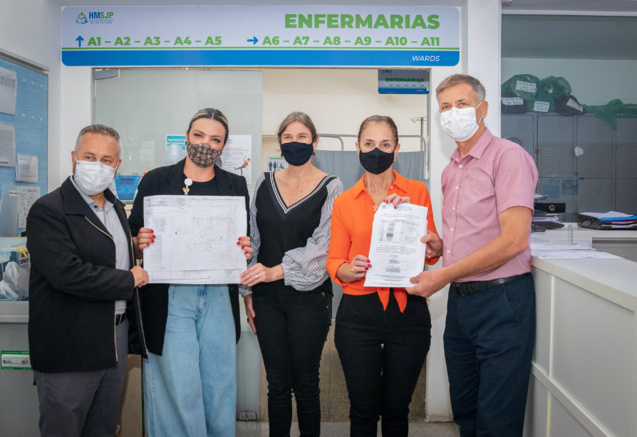 O anúncio do recurso para a reforma do Hospital e Maternidade SJP aconteceu nesta segunda-feira, 14, com a presença da prefeita da cidade, Nina Singer, do vereador Samuel Pinheiro, da secretária de Saúde,