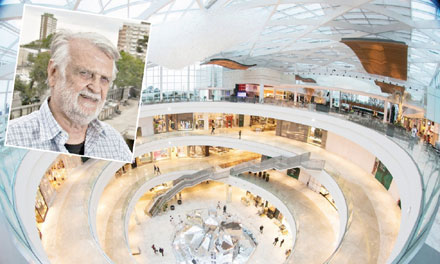 Vista interna do Shopping Pátio Batel e Salomão Soifer no destaque