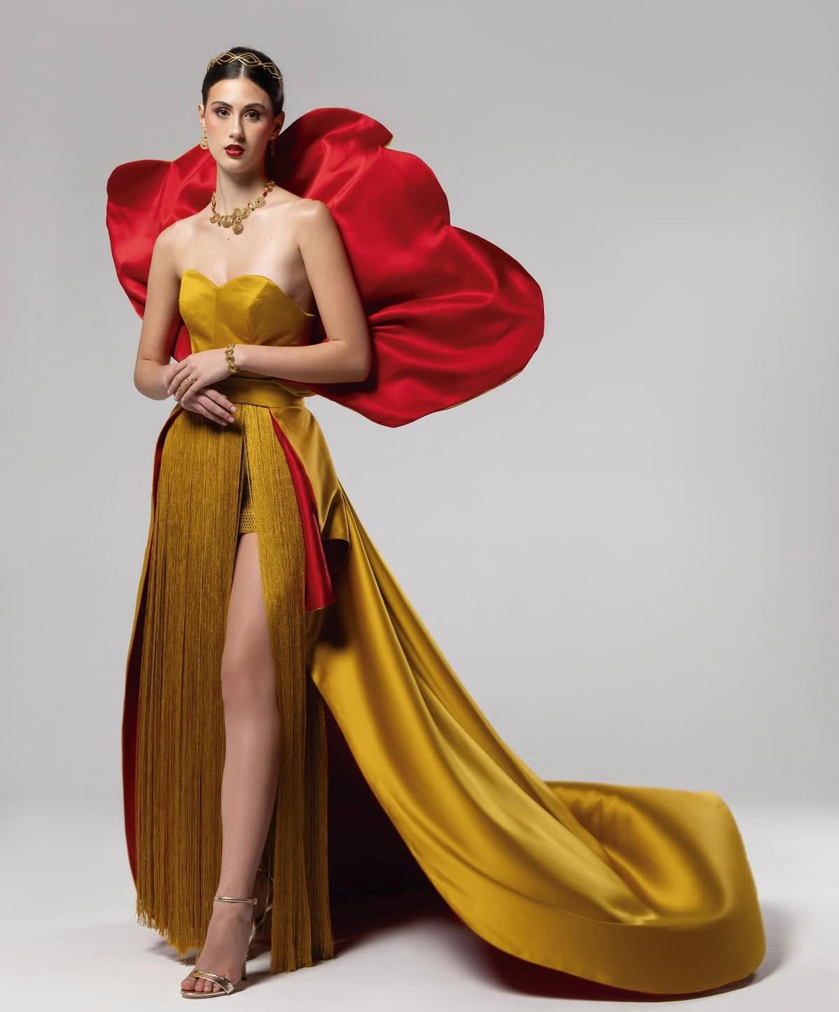 A coleção foi apresentada por meio de três looks que representam as fases da flor do pau-brasil e os ciclos da vida. As cores foram pensadas de forma simbólica, com predominância de tons de vermelho, dourado e marrom, em referência direta à árvore, à terra e ao processo de crescimento. O primeiro look simboliza a semente, o início silencioso e oculto, marcado pelo tempo do plantar e do confiar. O segundo representa a flor brotando, fase de transição em que surgem os primeiros sinais de crescimento e esperança. Já o terceiro look traduz a flor aberta, o florescer, momento de plenitude em que a beleza se revela no tempo certo, sem perder a memória do processo vivido.
