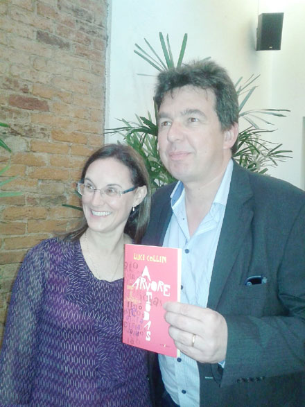Luci Colin; com Márcio Renato dos Santos, no lançamento de “Árvore Todas”