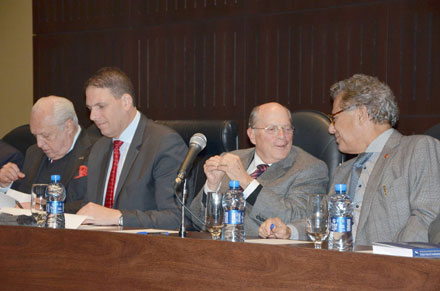 Extremamente comovido, o homenageado afirmou que sua vida profissional está conformada por um triângulo escaleno: trabalho, estudo e esperança.