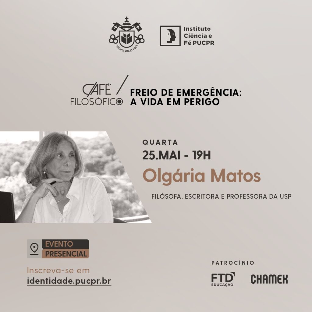 O primeiro encontro do Café Filosófico deste ano está marcado para o dia 25 de maio, às 19h, e será realizado na FTD Digital Arena, no câmpus de Curitiba da Universidade (Rua Imaculada Conceição, n. 1155 – Prado Velho), sendo exclusivamente presencial, sem transmissão online. A primeira convidada do ciclo é a filósofa Olgária Matos, escritora e professora da Universidade de São Paulo (USP).