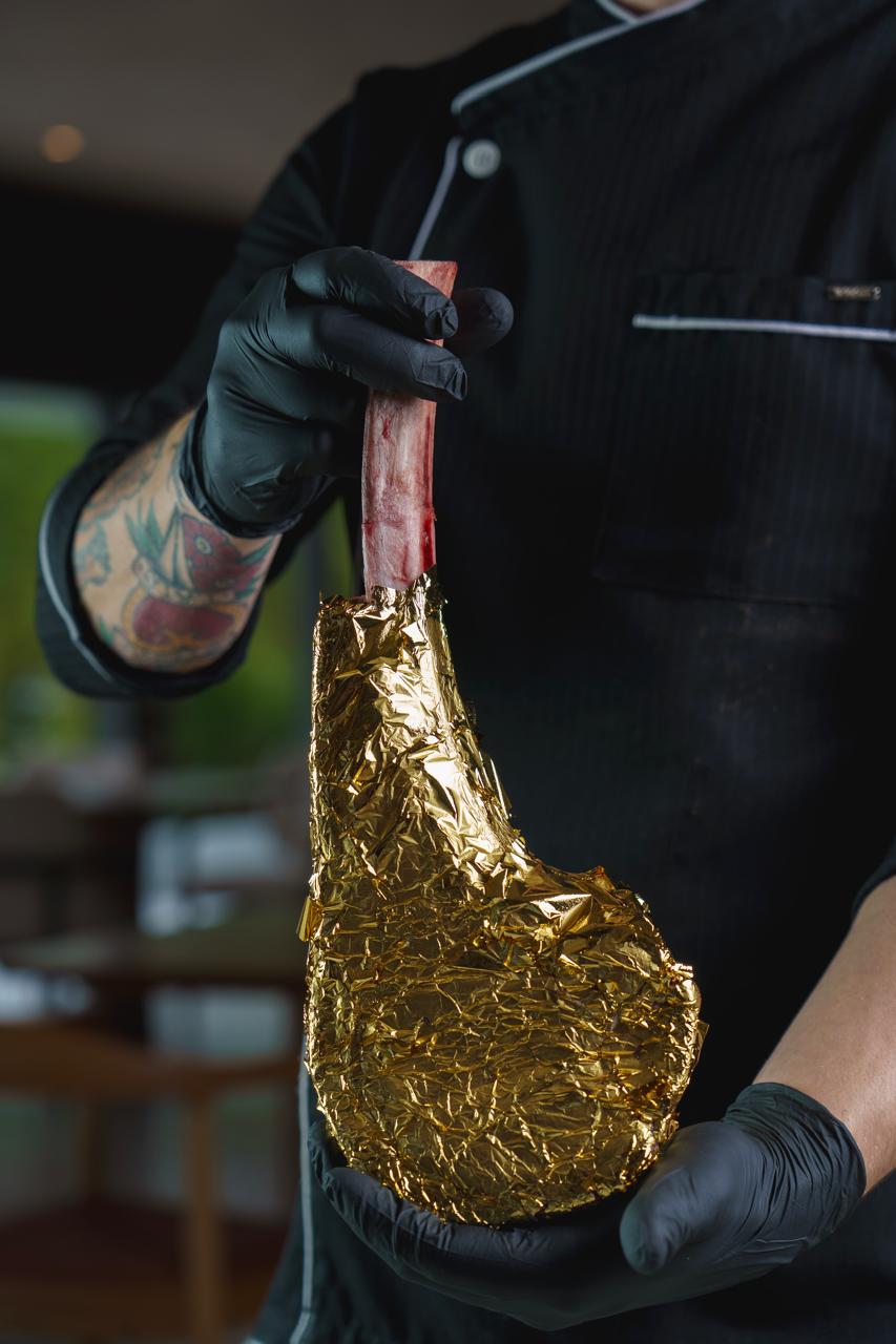 O Rodízio Premium da OX Room Steakhouse inclui uma sequência completa que vai das entradas aos cortes mais nobres, mantendo a identidade já consolidada da casa. Entre os destaques estão o Tomahawk finalizado com folhas de ouro, a Costela aberta servida na colher — apresentada ao cliente “macia e desfiada” —, carnes flambadas no whiskey e opções com cobertura de queijo.