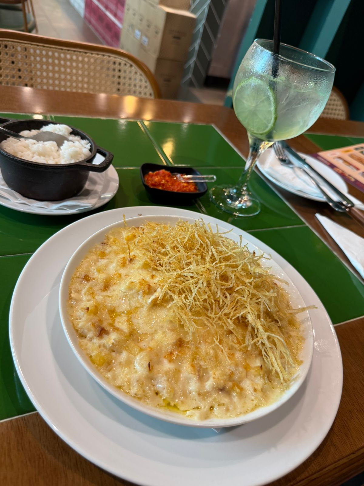 Outro ponto que me agradou foi o gratinado. Aquele dourado na superfície que já anuncia que a colher vai encontrar textura e sabor. É exatamente isso que acontece: por baixo da crosta levemente tostada, o conjunto é perfeito, quente e extremamente reconfortante. Cheguei até a queimar a língua.