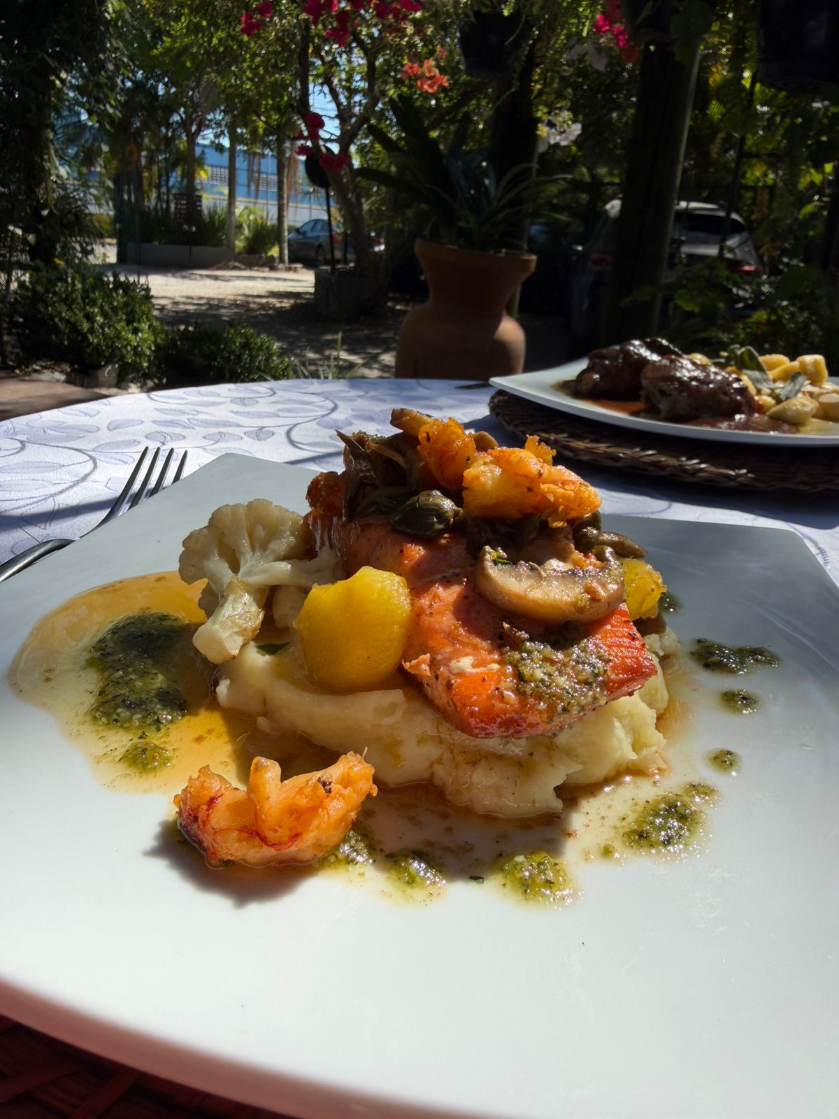 E aqui vai um charme à parte: a área externa. Mesas sob umbrelones, clima agradável e aquele cenário cheio de flores e muito verde, perfeito para um almoço sem pressa ou um fim de tarde com bons drinks.