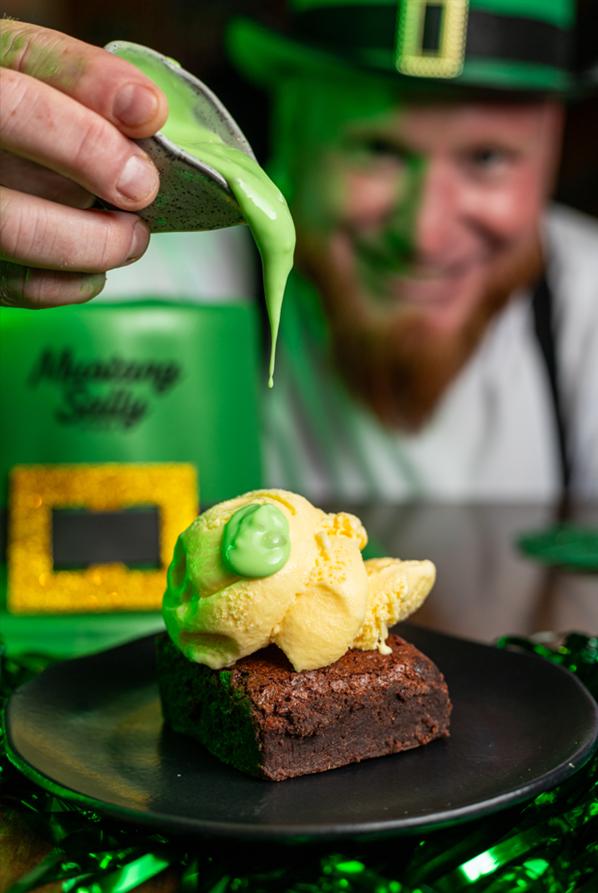 Para brindar, o tradicional Chope Verde Green Submarine, versão especial do tradicional “submarino” preparada com chope verde e um shot de Steinhaeger mergulhado na caneca. Agora a sobremesa temática é o Lucky Brownie, um brownie servido com sorvete de creme e finalizado com calda de pistache em tom verde vibrante. Curtiu?
