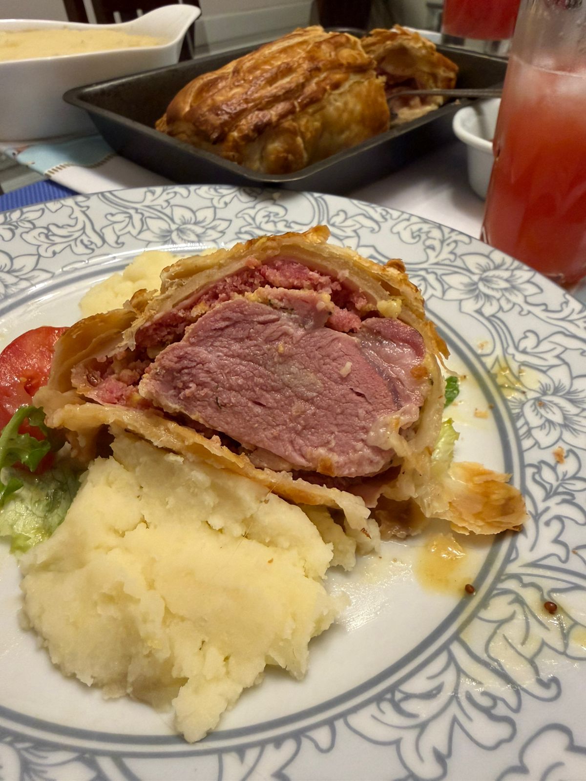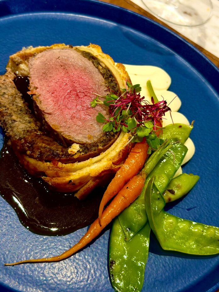 Esse prato exige técnica, respeito ao tempo e precisão. A carne suculenta, envolta por um duxelle bem ajustado e finalizada com a massa dourada no ponto certo é o tipo de preparo que separa o amador do cozinheiro que realmente domina o fogão. E ali, vendo cada etapa ao vivo, comecei a achar possível e, melhor ainda: acho que vou inventar em cima!