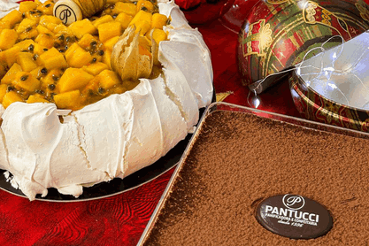 Na linha de sobremesas, os destaques incluem a Torta Saint Honoré de Noz Pecan (R$ 125), Torta de Pistache (R$ 199), Pavlova de Frutas Vermelhas (R$ 199), Pavlova de Frutas Amarelas (R$ 99), Tiramisu Box (R$ 129), Banoffee Box (R$ 39), Cheesecake (R$ 139) e a tradicional Rabanada Natalina (500g por R$ 39). Entre os bolos especiais, estão o Red Velvet (R$ 129) e o Bolo de Maracujá, Chocolate e 4 Leites (R$ 295), além de novidades como o Strogonoff de Nozes (R$ 78,90) e o Merengue de Morango (a partir de R$ 129).
