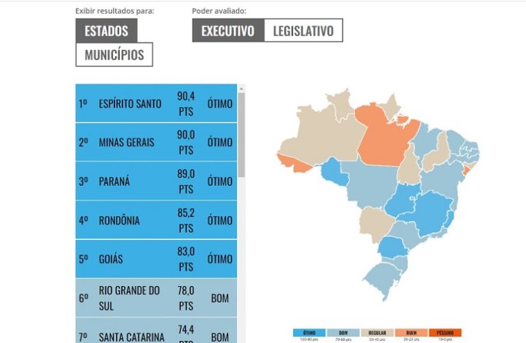 Entre as 27 unidades da federação, cinco receberam a avaliação de “ótimo”, 12 “bom”, sete “regular” e três “ruim”.