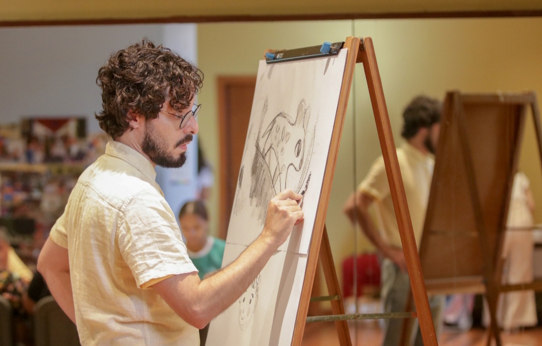 A proposta curatorial, assinada por Luisa Moraes — arquiteta e especialista em expografia —, cria um ambiente acolhedor e interativo que aproxima o público do processo criativo do ilustrador e incentiva novas formas de relação com a leitura e com a imagem.