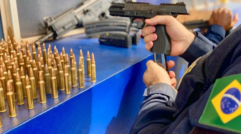O preso e as armas foram encaminhadas para a Polícia Federal para o registro do crime de tráfico internacional de arma de fogo.