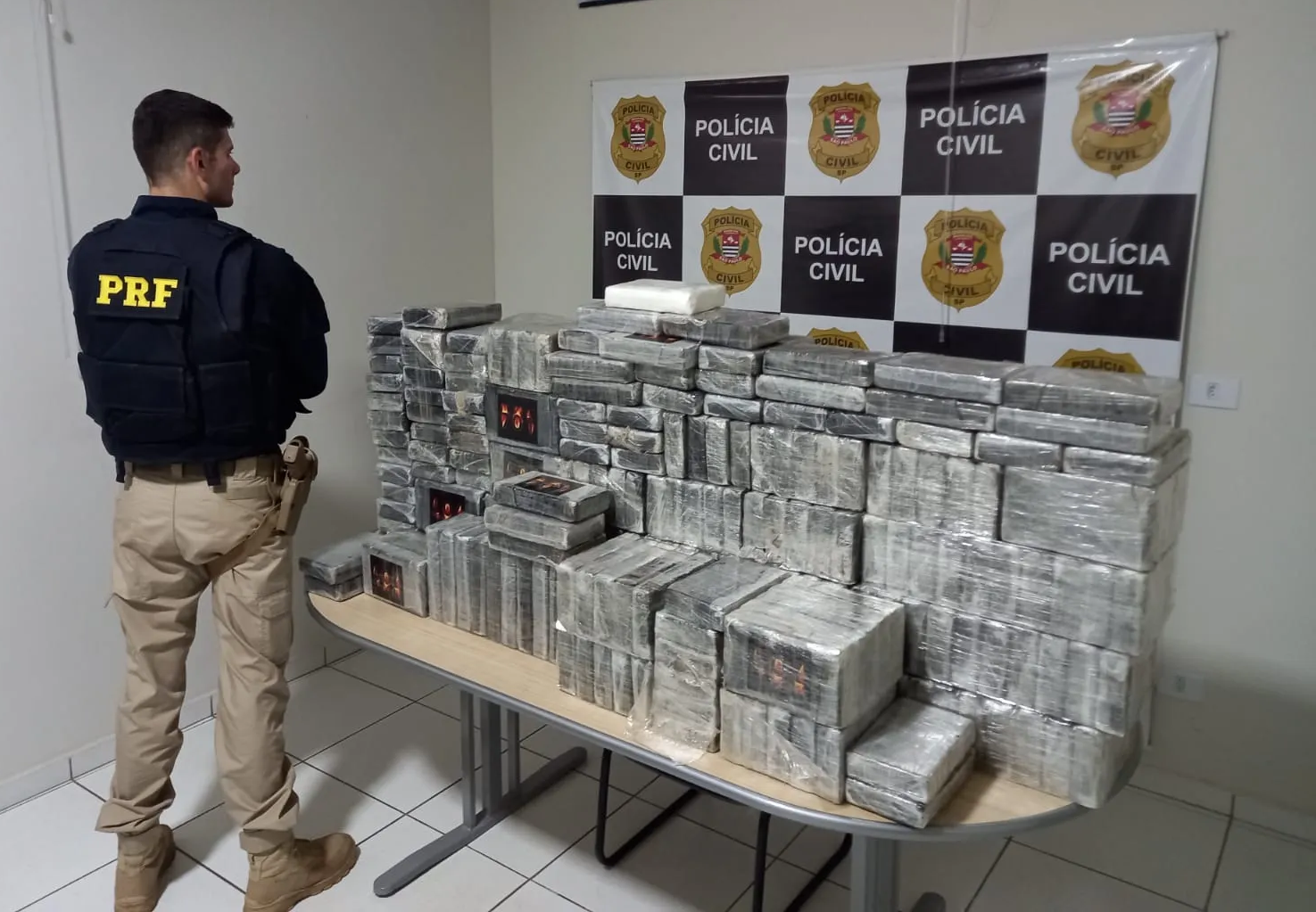 Dentro desse compartimento, os policiais encontraram ao todo 259 quilos de cocaína embalada em tabletes. De acordo com a PRF, o entorpecente foi avaliado em R$ 10 milhões. O homem foi preso por tráfico de drogas e lavado para o plantão da Central de Polícia Judiciária de Piraju-SP.