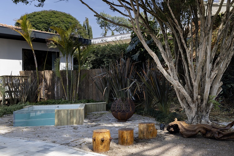 Já o projeto de Claudia Canales transporta o visitante para outro tipo de encanto. Com 900m², o Jardim das Boas Energias é uma ode à conexão espiritual e ao bem-estar. Inspirado em uma viagem ao Japão, o espaço mistura influências zen e orientais em um percurso cheio de poesia natural. Há áreas para meditação, bate-papo entre amigos e até brincadeiras que despertam a criança interior. A vegetação farta, combinada a madeiras, tons terrosos e luz suave, cria uma atmosfera que acolhe e revigora — um verdadeiro convite para respirar fundo e deixar o tempo passar devagar.