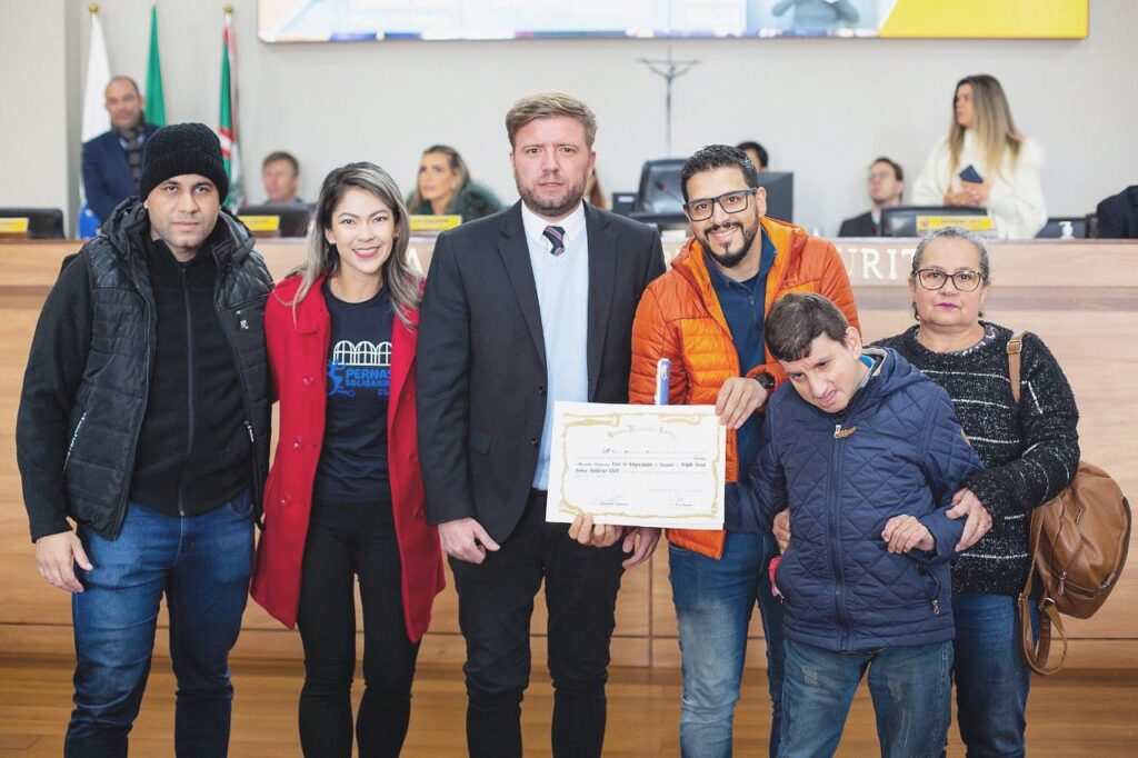Nesta terça-feira (17), o vereador Alexandre Leprevost fez a homenagem e entrega do certificado de votos de Congratulações e Aplausos. “Além de todo o carinho e admiração que eu tenho por este projeto, esse também é o reconhecimento de toda a casa legislativa para que todos os envolvidos no Pernas Solidárias sigam inspirando, levando o processo de inclusão e sobretudo a alegria para a vida de tantas pessoas”, comentou.