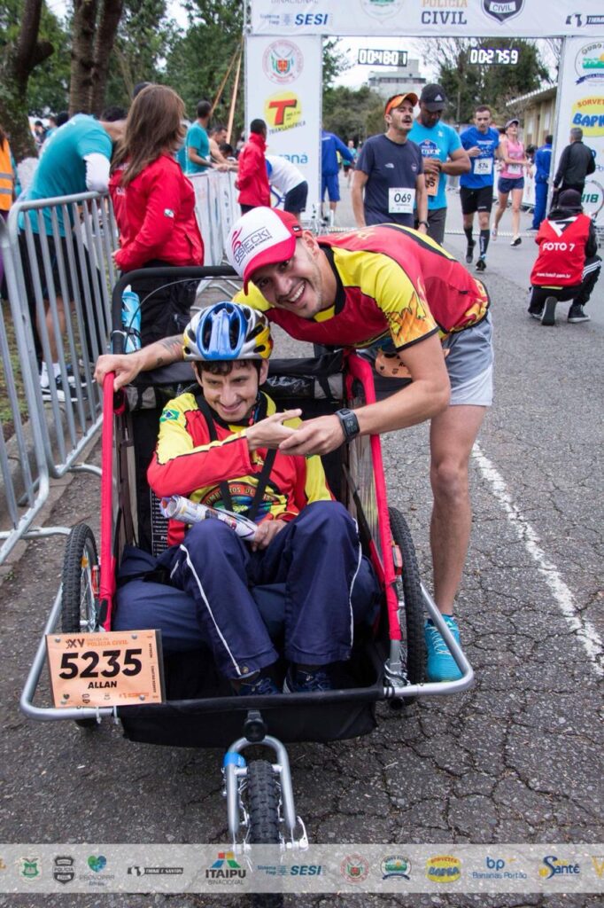 A iniciativa é do Renan Lopes Leme, corredor há mais de 8 anos. Em 2018, ele foi assistir ao triathlon em Guaratuba e viu um pai praticando esporte com o filho portador de deficiência. Foi então que pensou que também poderia contribuir com a inclusão de seu irmão Allan na corrida de rua.