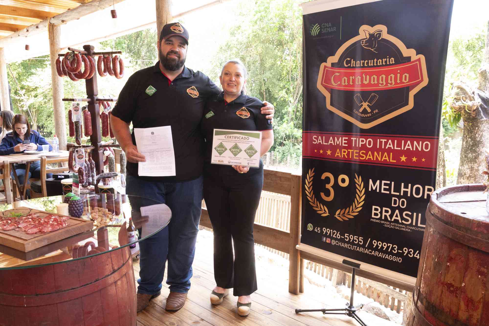 Negócios & Gente por Aline Cambuy – A Charcutaria Caravaggio, de Catanduvas (PR), acaba de alcançar um marco histórico para o município. A pequena agroindústria familiar, conduzida pelos produtores associados à Coopavel, Maiara Detone Rocha Neis e Edinei Neis, recebeu o Selo Arte, certificação federal que reconhece a excelência da produção artesanal de alimentos e autoriza sua comercialização em todo o país. Com a conquista, sete produtos da marca passam a estar habilitados para chegar às prateleiras de todos os estados.