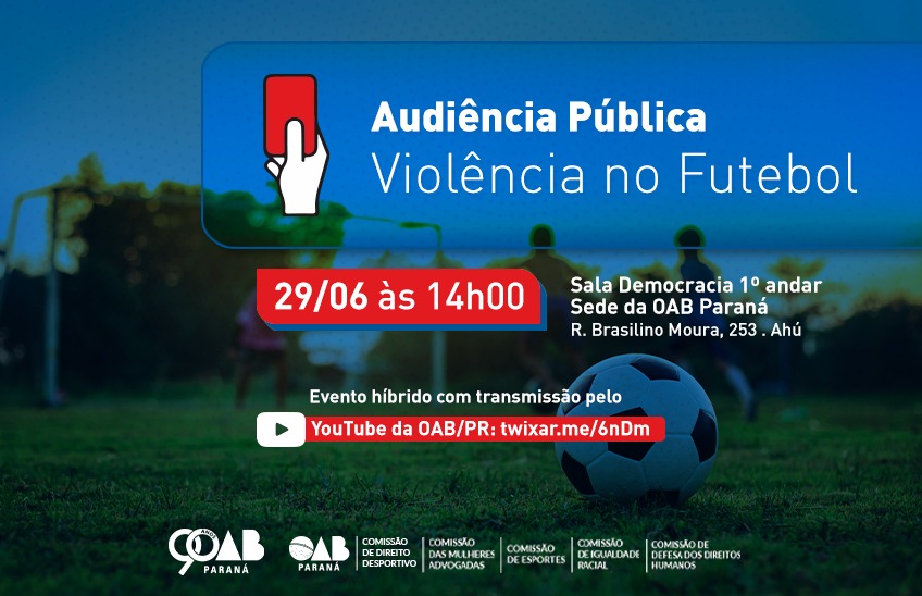 Violência nos estádios de futebol e suas proximidades é o tema da audiência pública que a OAB Paraná promove na próxima quarta-feira, 29 de junho, a partir das 14h, com transmissão pelo Youtube (acesse aqui).