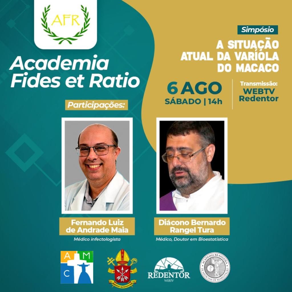 A Academia Fides et Ratio da Arquidiocese do Rio de Janeiro, com o apoio da Academia Brasileira de Medicina de Reabilitação e a Associação dos Médicos Católicos da Arquidiocese do Rio de Janeiro, apresentará no próximo sábado, dia 06 de Agosto de 2022, às 14 horas, o Simpósio sobre “A Situação atual da Varíola do macaco”, para o qual convida todos os interessados.