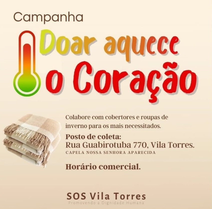 O inverno está chegando e, nesta época do ano, aumenta a preocupação com os mais vulneráveis, que ficam mais expostos ao sofrimento provocado pelo frio. Enfrentar as noites geladas de Curitiba e a estação mais fria do ano é ainda mais difícil para os mais pobres. Pensando em socorrer essas pessoas, o Movimento SOS Vila Torres lançou a Campanha “Doar Aquece o Coração”, para arrecadar cobertores e agasalhos.