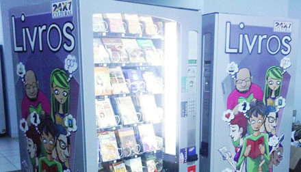 Nesse tempo – eureka! – concentrou-se no observar máquinas de vender bebidas e guloseimas. “Por que não uma vending machine de livros?”, se indagou Bueno Netto.