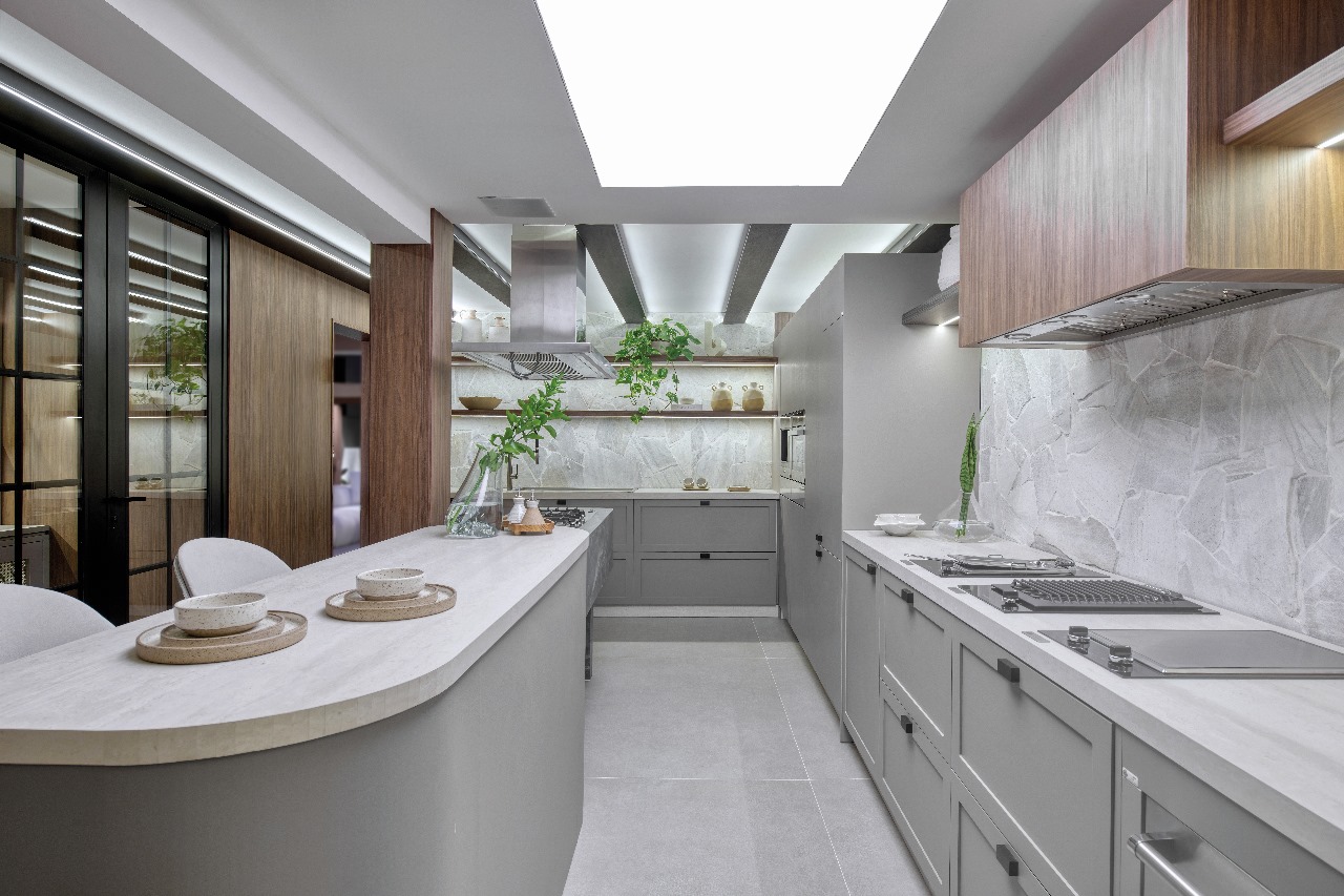 Entre os espaços que estão dando o que falar, dois levam a assinatura da Movepar Curitiba, referência em móveis planejados e sob medida. A Cozinha Gourmet e Jardim, de Viviane Busch, apresenta o conceito do “novo luxo”: um ambiente sofisticado, acolhedor e cheio de alma — tipo “casa de vó modernizada”, com madeira, pedra e aquele toque artesanal que aquece o coração. Já na Suíte do Empresário, criada por Rosa e Camilla Dalledone, o destaque fica para as curvas fluidas e o design inspirado na estética aerodinâmica do Streamline Moderne. “Os projetos mostram o quanto o planejado pode ser versátil e artístico”, comenta Diogo Oliveira, diretor da Movepar. “Hoje o sob medida é movimento, textura e poesia.”