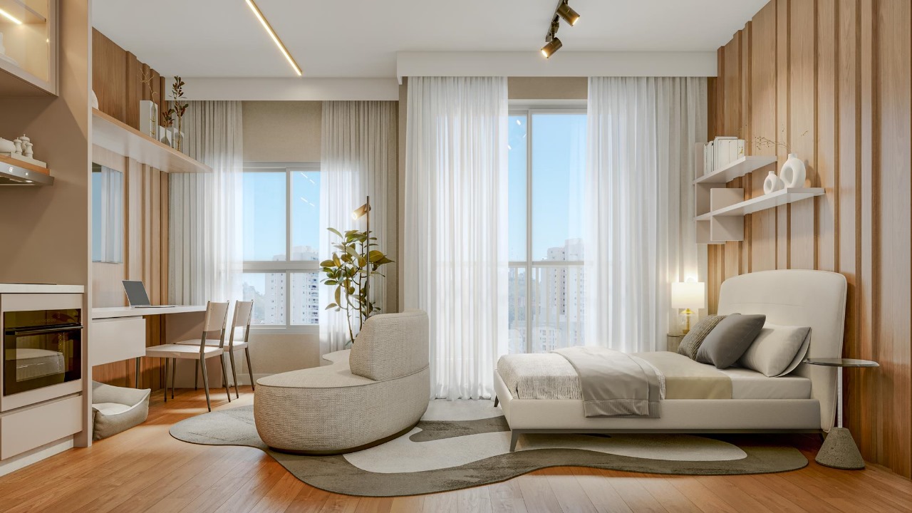 A arquitetura limpa e atemporal, assinada por Flavio Schiavon (Baggio Schiavon Arquitetura), dialoga com o paisagismo elegante de Marcelo Calixto, criando uma harmonia entre dentro e fora. Madeira, tons neutros e peças de design cuidadosamente escolhidas dão o tom da decoração, enquanto a iluminação natural e os pontos de luz estratégicos realçam a fluidez entre estar, jantar e cozinha. As áreas comuns completam a experiência, com piscina aquecida, sala de massagem, academia e espaços gourmet. Há ainda gardens suspensos e coberturas que chegam a 455 m² — um verdadeiro refúgio urbano, com entrega prevista para dezembro de 2026. Nos decorados, marcas como Perfacto, Simmetria, Michelangelo, Light & Co e Moss Home assinam os detalhes que fazem toda diferença: design de ponta, conforto real e aquela sensação boa de casa que a gente quer chamar de nossa.